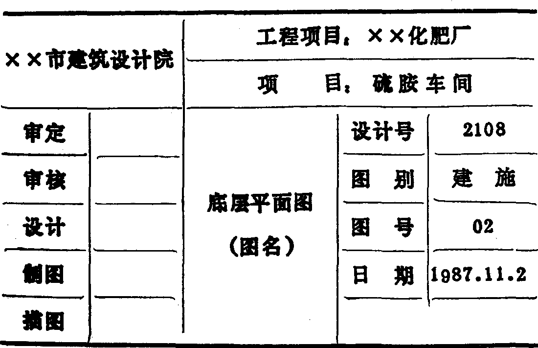| 释义 | 图标是图纸标题栏的简称。图标的作用是表示本张图纸的类别、图名、项目名称、图纸编号等,以便从图纸目录中能迅速查找到所需要的图纸。图标的内容包括: (1)工程名称。指建设项目(或建设单位)名称,如“××化肥厂”。(2)工程项目。指本工程中的单位工程名称,如“硫胺车间”。(3)图名。主要表明本张图纸的主要内容,如“底层平面图”、“标准层平面图”等。(4)设计号。指设计部门对该工程的编号。(5)图别。表明本张图纸所属的专业类别,如“建施”、“结施”等。(6)图号:指本张图纸在其属一类专业图纸中的编号,用阿拉伯数字编排。