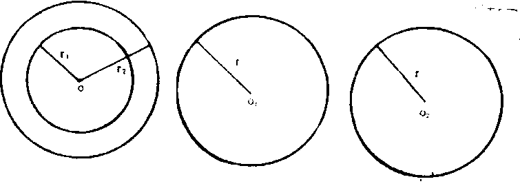 ☚ 三维 正方形 ☛ 圆 圆Yuan当一条线段绕着它固定的一端(图1中的O点)在平面内旋转一周时,它的另一端点(图1中的A点)所画成的封闭曲线叫做圆。圆还可以定义为 “平面内到定点的距离等于定长的点的集合”。这个定点叫做圆的圆心,这个定长叫做圆的半径,如图中OA, OB是圆的半径,通常用字母r表示。圆用符号“⊙”表示, 例如图中以O为圆心的圆,记作⊙O,读作圆O。我们说的圆实际上是圆周。圆周所包围的平面部分叫做圆面。通过圆心并且两个端点都在圆上的线段,叫作直径,通常用字母d表示。如图中BC是⊙O的直径。圆心相同、半径不相等的两个圆叫做同心圆。如图2中两个圆是以O为圆心的同心圆。半径相等、圆心不相同的两个圆叫做等圆。如图3中的⊙O1和⊙O2是半径相等的两个等圆。同圆的半径相等。圆既是轴对称图形、过圆心的任意直线都是它的对称轴,又是中心对称图形、圆心是它的对称中心。