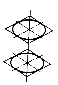 步骤是:❶画轴 画OX,OY,OZ轴,使OX,OY,OZ的夹角都是120°(图1);❷画下底面 作出辅助菱形,画出椭圆(图2);❸画上底面 在OZ轴上截取圆柱的高得上底面中心,作出上底面辅助菱形,画出椭圆(图3);❹成图 画两个椭圆的外公切线,去掉辅助线,分清虚实线,即可得到圆柱的直观图(图4).