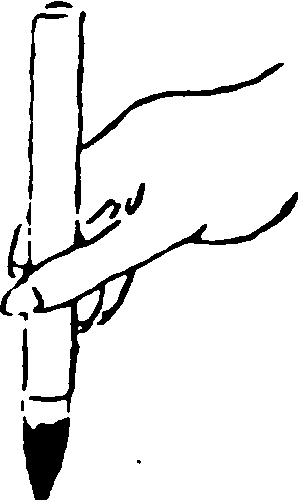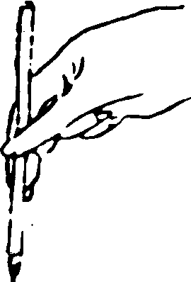 (6).鵝頭法——置食指於筆管頂端,以拇指與中指、無名指執管,擺動手腕作書,成鵝頭擺動之勢。以上所述,僅係六種基本執筆法,其他方法、名稱、議說尚多。如圖例示。