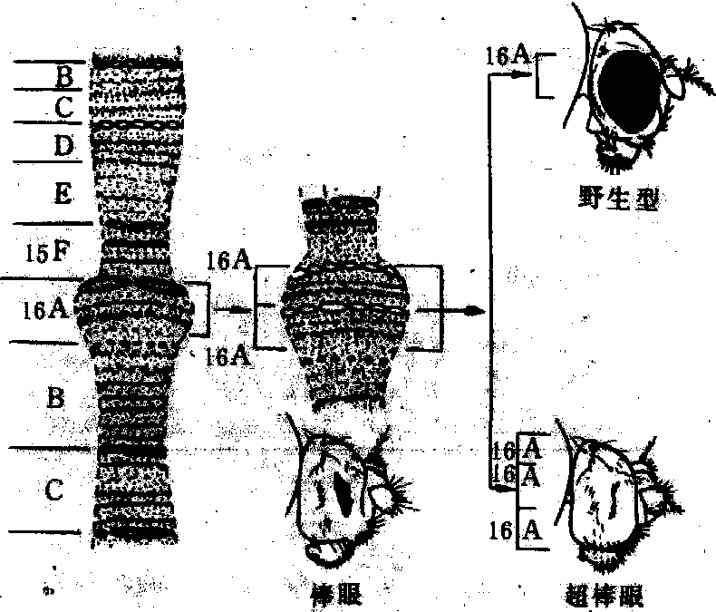 果蝇的棒眼稳定型位置效应 玉米的花斑型位置效应是属于不稳定的位置效应。回复突变率较高,因而出现显性和隐性性状嵌合的彩斑现象。玉米籽粒的彩斑与Ds-Ac解离激活系统有关,Ds和Ac是两个各自能在同一染色体或不同染色体之间转移位置的遗传因子,又称转座子。Ac的作用是激活Ds,没有其他表型效应。Ds能抑制相邻基因的表达。在胚乳细胞中,C是合成紫糊粉色素必需因子,如果Ds转移到C座位近旁,则色素不能合成,籽粒无色。如果有Ac存在,它激活Ds离开C,C功能恢复而使籽粒出现彩斑。在胚乳细胞中,Ds解离情况不等,彩斑大小也不同。花斑位置效应也见于果蝇,月见草等。 |