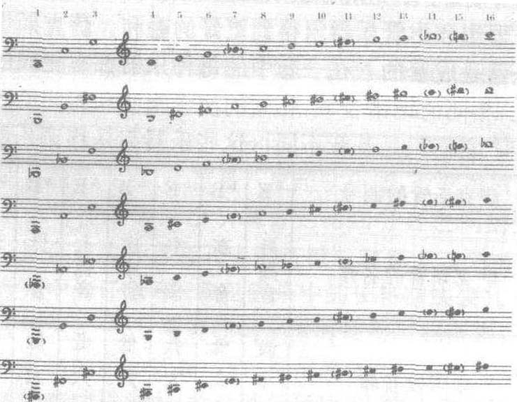 现代的铜管乐器一般装有3个活塞,所控制的附加管的长度各不相同。排在中间的第2活塞按下后可降低半音,第一活塞(近号嘴者)按下后可降低全音,第三活塞(近喇叭口者)按下后可降低1 1/2音,第二、三活塞合用可降低2全音,第1、3活塞合用可降低21/2音,第1、2、3活塞全部按下时降低3全音,下表列示了铜管乐器的泛音列和按下活塞后的变化情况,此表可作为铜管乐器的指法表,它适用于圆号、长号大号和古小号。现代小号比古小号的管身缩短了1/2,所以要将表中各音翻高八度。萨克斯号族的各种号(如中音号、次中音号等)也都需将此表中的音翻高八度。 铜管乐器都是移调乐器,上表中所列示的均为记谱音,其实际音均要按其乐器的调来决定需移高或移低若干度,下表列示了各种铜管乐器的记谱音高和实际音高的关系 : 管弦乐队中的铜管乐器组一般使用圆号2—4支、小号2—3支,长号2—3支,大号1支(也可不用)。吹奏乐队中所使用的铜管乐器以萨克斯号族乐器为主,根据编制情况加用小号、长号和圆号。 ☚ 萨克斯管 圆号 ☛ |