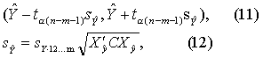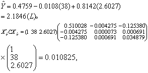 式中X′g表示某受试者各自变量观察值组成的行向量,如例3, X′g=(1 38 2.6027)。 (3)按式(13)、(14)预测个体值Y的容许区间,可用于确定正常值范围或质量控制。