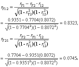按式(1)求三个变量间的简单相关系数:
