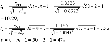 按式(4)作偏相关系数的t检验: