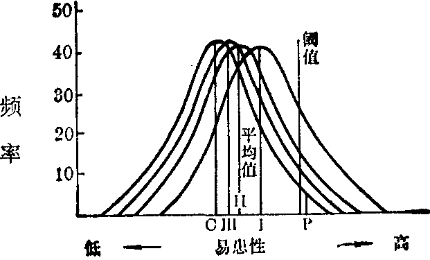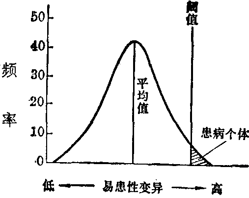 图2 群体易患性变异的分布示意图