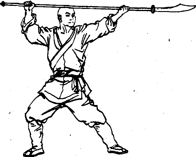 大刀刀法。指不能闪避时,用刀柄中段防御对方持兵械向我正中顶门上打来的一种方法。《十八般武艺全书·大刀法》:“架,……用中段向上迎架之。敌人必自护其械之刃。”