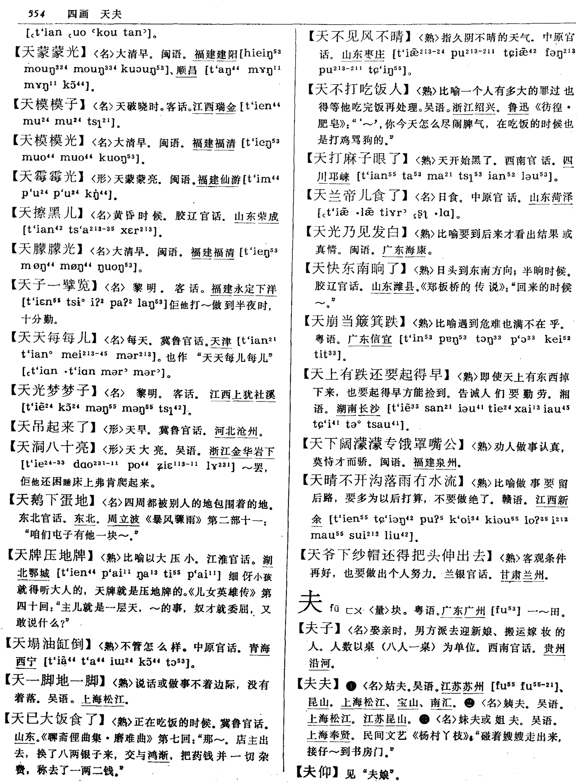 释义 天光乃见发白0554比喻要到后来才看出结果或真情。闽语。广东海康。