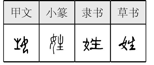 xìnɡ表意,从女从生,生指生命,本义表示生育、生产,引申为表明家族来源或系统的称号、以某称号为姓(表明所属家族)等。 【辨析】 ❶姓/氏 这两个字在上古不同义。“姓”最早产生于母系氏族社会,每个氏族或部落一般都有自己的姓,同姓的人有共同的祖先。“氏”是姓的分支,用于区分同姓中不同祖先的后代子孙。战国以后,姓和氏逐渐合而为一,到了汉代统称为姓。 ❷姓/性/生 见367页“生”。姓 (xìng)从女、生,生亦聲。 【按】姓,《説文》:“人所生也。”本義是標誌家族系統的字。 姓 甲 金 篆 隶xìng【析形】形声字。甲骨文字形从女,生声,生兼有表意作用。金文字形常以生为姓,或体从人,生声。小篆字形沿袭甲骨文写法。 【释义】《说文》:“人所生也。”本义为标志家族的字。不少古姓如姜、姬、嬴、姒等都加女旁,显示先民曾经经历过母权社会。因此姓原指母亲一系的血缘关系。先秦同姓不能通婚,指的是母方同血统者不能结婚。上古有姓有氏,氏是姓的分支,由于家族子孙繁衍,一族分为若干分支散居各地,每支有一个特殊的称号作为标志,就是氏。战国以后,原有的贵族宗法制度开始瓦解,姓氏合一,通称为姓,成为父系血缘的代号。 【shape analysis】It is the pictophonetic character.In Oracle it is related to 女(female)and sounds like the pronunciation of生(shēng). 【original meaning】A word that gives a name to a family.Most ancient family names such as 姜、姬、嬴、姒 are with a part 女 ,which shows our ancestors had undergone matriarchal society.Therefore,family names primitively meant the kinship of mother's family.In pre-Qin Period,people cannot intermarry to the one with the same family name,which means they could not marry to each other if their mothers were of the same kinship.There existed family name and surname in ancient times.Surname was a division of family name.Owing to the reproduction of a family offspring,one family was divided into several branches scattered everywhere and each branch had a special title as a symbol,that's surname.The former patriarchal clan system started to break down after the Warring State Period.Family name combined with surname and was called family name commonly,and finally became the code name of father's kinship. |