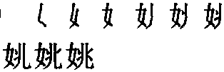 【提示】女,位于字或部件的左边时,末笔的横与撇相接,撇、横均不出头。
