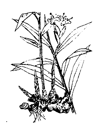 姜的生长周期 播种前晒种催芽,洗净种姜,晾晒2~3天,以提高种姜温度,减少水分,促进养分分解。精选姜种,置22~25℃黑暗温暖处培育壮芽,需20~25天。 冬前秋耕,立春细耙。中国南方多雨地区采用高畦栽培,北方开沟种植,沟内施足基肥,播前将已催芽的姜种掰成小块,每块70~100克为宜,其上留一个壮芽。每亩用种姜400~500公斤。先浇透水,将种姜排放沟中,后覆土约4~5厘米。 姜茎直立,叶片开展度小,较耐荫,适密植。行距52~55厘米、株距18~20厘米。姜不耐强光,光补偿点为500~800勒克斯,光饱和点为25000~30 000勒克斯,35 000勒克斯以上时光合作用逐渐减弱,20000~35000勒克斯为姜个体光合作用的适宜光强。因此姜生长前期需遮荫。南方于苗期多搭遮荫棚,8月下旬拆除; 也有与棚架作物间、套种进行遮荫的; 北方多插草遮荫,播种后在沟南侧插谷草或玉米秸,编成花篱,高约70~80厘米,8月上旬后拔除。姜幼苗期长,生长缓慢,须防草害,每亩可用0.75~1.0公斤除草醚与半潮湿细土充分混匀,撒在姜沟周围,保持土面湿润,杀草效果达80%以上。幼苗期需水量不大,暴雨后应及时排水,以防姜块腐烂。旺盛生长期需水量较多,保持土壤经常湿润。 姜植株鲜重增长动态与对氮、磷、钾的吸收动态相一致,幼苗期对三要素的吸收量约占全期总吸收量的6%,生长盛期约占94%,对氮、磷、钾吸收比率大致为4:1:4。姜所需养分,除由基肥供给外,还需追肥。苗高35厘米时,追施少量速效氮肥,称“催苗肥”;2~3个分枝时补施有机肥; 6~8个分枝时追施速效肥,促使姜块迅速膨大并防止后期缺肥而茎叶早衰。旺盛生长期,需结合追肥和浇水进行培土,变沟为垄,为根茎生长创造适宜条件。 种姜在发芽并长成新株后,不腐烂,不干瘪,可以采收食用。鲜姜多在霜前收获,也可在根茎旺盛生长时采收嫩姜。 贮藏加工 窖藏。贮藏前期,呼吸作用强,保持18℃左右温度,有利于伤口愈合和地上残茎脱落; 贮藏后期,保持窖温12~13℃,以控制呼吸减少消耗,窖内空气相对湿度保持在95%以上,防姜块失水干缩; 空气中CO2浓度约2%、O219%时,对姜块呼吸有抑制作用。 简易加工: ❶腌姜。每50公斤鲜姜加盐12.5公斤、水2.5公斤,一层鲜姜撒一层盐,每天倒缸一次,15天后封缸贮存。 ❷腌姜芽。选肥壮、白嫩的伏姜芽,每50公斤加盐12.5公斤,15天即可食用。 ❸甜酱姜芽。将50公斤腌姜芽浸水,控干后入缸卤酱,每50公斤姜芽用酱38.5公斤,经4~5天,再用甜面酱酱渍15天。此外,还可加工成姜糖、姜罐头等。 病虫害及防治 腐烂病(Pseudomonas solanacea-rum) 为细菌病。主要侵害叶及根茎部,发病时叶片由下至上变枯黄色,萎蔫反卷。茎基部和根茎呈黄褐色水渍状,维管束变褐,根茎腐烂,甚至地上部凋萎枯死。通常6月开始发病,8月至9月高温季节发病严重,且蔓延迅速。病原菌主要在根茎及土壤中越冬,田间传染媒介为灌溉水、肥料和地下害虫。可实行轮作换茬; 严格选用无病姜种; 灌溉时防止病田水流入无病田中; 禁用病株沤制堆肥等方法防治。姜gingerZingiber officinale Rosc.,又称生姜、黄姜。姜科,姜属。多年生草本,作一年生栽培。2n=2x=22。原产中国及东南亚热带地区,已遍布世界。浅根系,分纤维根和肉质根两种。地上茎直立,为叶鞘所包,茎高80~100 cm,茎基部膨大,形成地下根状茎。叶包括叶片和叶鞘两部分,叶片披针形,互生。穗状花序,花淡黄色。蒴果,开花结果者极少。一般用成熟的地下根状茎繁殖。喜温暖湿润,忌炎热、干旱,不耐霜冻,在无霜期内生育。发芽需较高的温度,催芽后定植,夏季需遮阳降温,覆草保墒,秋季短日照条件下形成姜块。栽培有收种姜、嫩姜及老姜的习惯。种姜发芽后苗高15~18 cm时结合施肥、中耕,在不伤根系下收回种姜,俗称偷娘姜。白露前后收嫩姜,供鲜食或腌渍用。霜冻前应及时收老姜,防止受冻。生姜含姜油酚、姜油酮、姜烯酚和姜油醇等,具特殊辣味,可作香辛调料,也可加工成姜干、姜粉、姜汁、姜酒、糖姜、醋姜、糟姜,工业上可以提炼姜油。入药有健胃、去寒和发汗的功效。 姜姜科姜属多年生宿根草本植物。又称生姜。株高40~100 cm,根状茎肥厚,具辛辣香味。根群分布于深30 cm内的耕层,分布半径约40 cm。一般不开花。叶无柄,披针形或线状披针形,叶鞘抱茎。花葶自根状茎生出,直立,穗状花序。花冠黄绿色,花期7~9月。蒴果。染色体数2n=22。生长适宜温度22~25℃,5℃以下停止生长。分疏苗型和密苗型2类。原产印度常绿雨林边沿地带。中国古来引种栽培,山东、江苏、福建、浙江、湖北、湖南、四川栽培较多。栽培品种有红爪姜、黄爪姜、白姜、凤生姜和北方姜等。根状茎繁殖,用根状茎沙藏室内,春季催芽,催芽后掰开成3~5块,每块带一壮芽。按20 cm×50 cm的株行距种植,亩用种量250~300 kg,10~11月挖收,亩可收获1500 kg。姜块洗净,冷蒸馏24h即得姜油,得油率0.27%~0.33%。姜油用于食品和化妆品香料。民间调味香料,或糖、盐腌制作姜片糖等小食品。 姜 姜jiangZingiber offieinale姜科,姜属。多年生草本。作1年生栽培。须根不发达,根状茎肥厚,扁平,呈不规则的块状;灰白或黄色,具芳香和辛辣味。地上茎高60~70厘米。叶披针形,排成两列、无叶柄,叶舌膜质。穗状花序,花下有淡绿色或边缘淡黄色的苞片层层包围。花冠黄绿色,能育雄蕊1枚,另有退化雄蕊连合成的唇瓣,紫色,散布白斑点。在温带通常不开花,喜阴湿温暖、忌干旱、霜冻。蔬菜用姜适宜栽在壤土或粘土