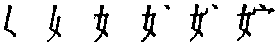【提示】女,位于字左时,横与撇相接,撇、横均不出头。