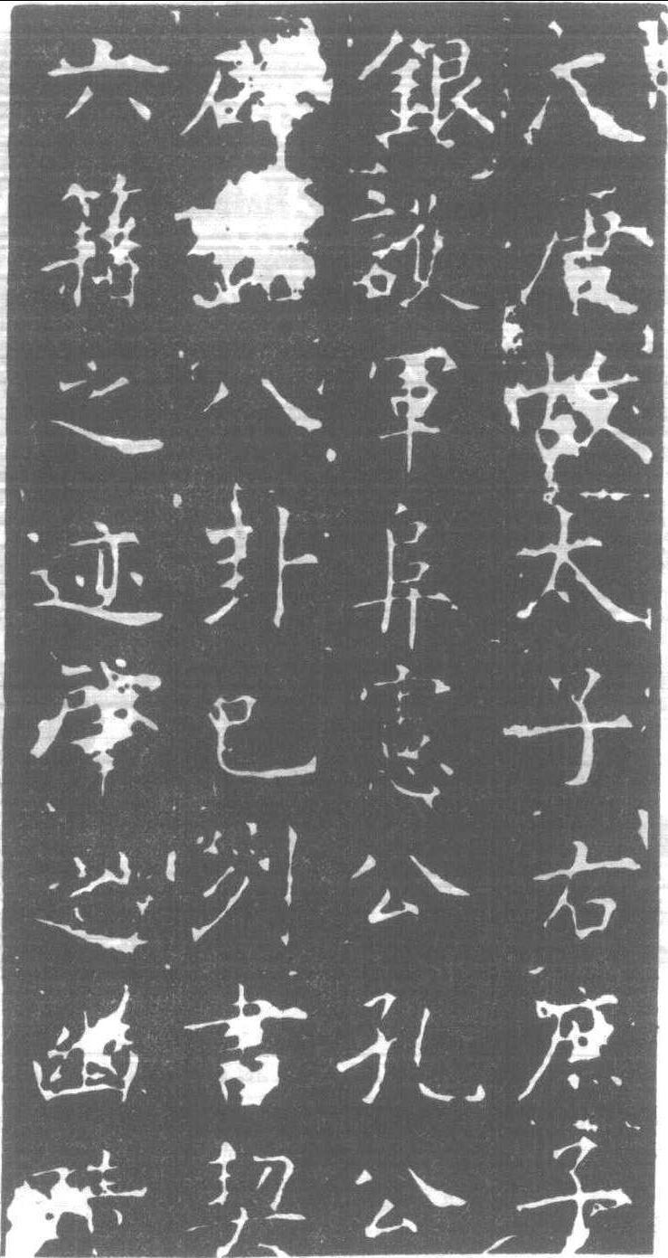 | 释义 | 孔穎達碑唐·貞觀二十二年 (648) 刻。于志寧撰。正書三十五行,行七十字。碑額篆書“大唐故國子祭酒曲阜憲公孔公之碑銘”十六字。此係“昭陵陪葬碑”之一,書者不詳,風格酷似虞世南,然非其書,世南早于十二年前殁世。楊守敬《平碑記》曰:“蓋學虞永興者而稍弱。”碑面摩泐甚,僅上截得見。今存陝西醴泉縣北二十里西谷村昭陵南十里。