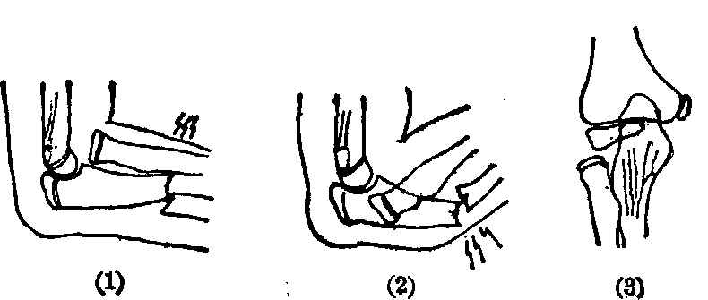❷屈曲型:极为少见。桡骨头向后外方滑脱,尺骨骨折亦随之向背侧、桡侧成角。 ❸内收型: 多见于幼儿,肘关节伸直时,前臂于极度内收位造成尺骨喙突部骨折,尺骨向桡侧成角,桡骨头向外脱位。 外伤后,患肘一般处于屈曲,前臂旋前位,活动受限,肘部肿胀,明显压痛。移位严重者尺骨成角畸形,于肘关节前外方可摸到脱出的桡骨头。桡骨小头向前脱位时,易挫伤桡神经深支。摄X线片时须包括肱骨下端及肘、腕两个关节,以免漏诊。 闭合复位后用夹板或石膏托外固定可得到满意效果,儿童极少需切开复位。复位失败、桡骨头脱位漏诊,以及两年内桡神经损伤不恢复者,可作切开复位、环状韧带修补和桡神经探查。 ☚ 肱骨髁上骨折 桡尺骨骨折 ☛ |