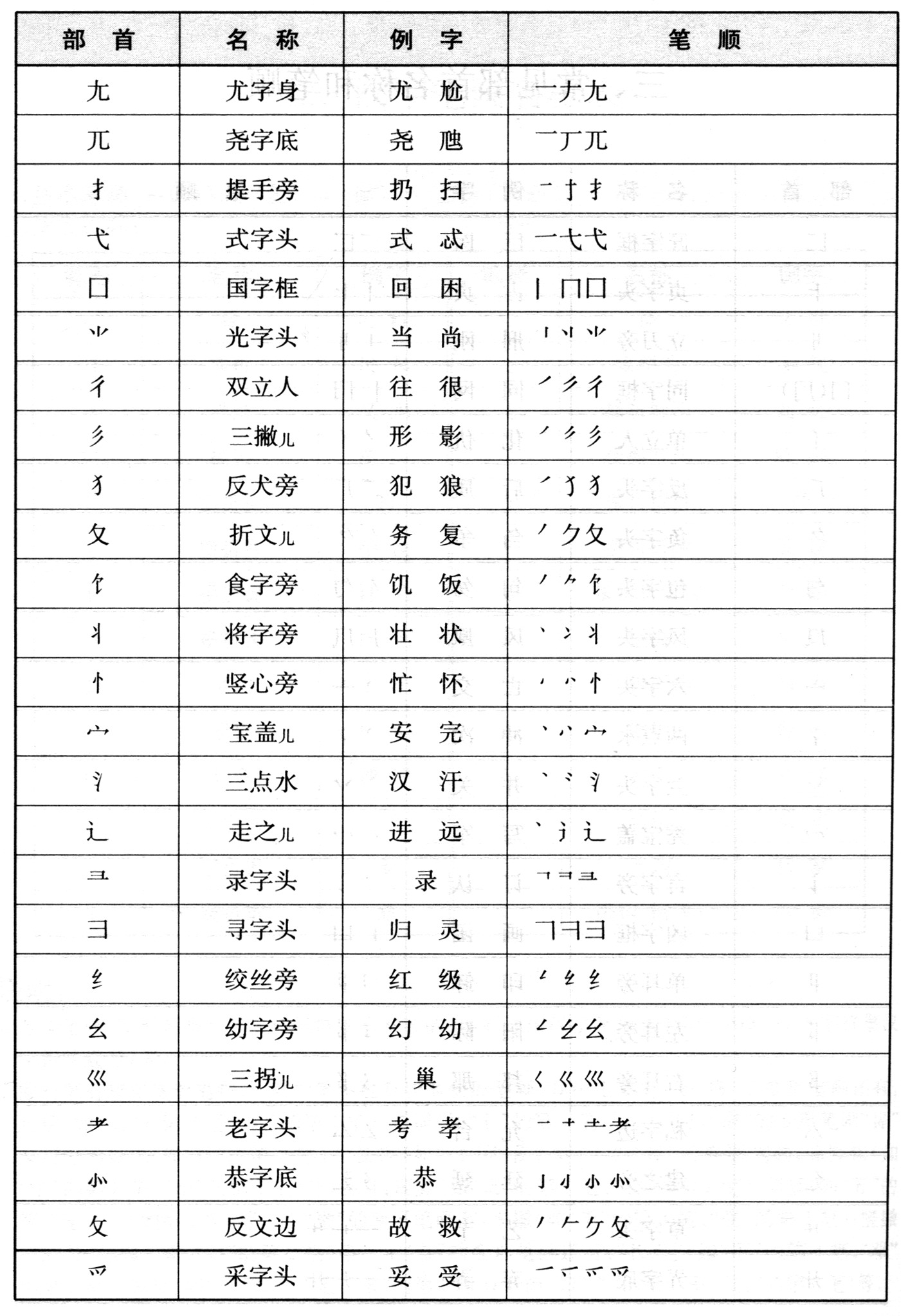 三、常见部首名称和笔顺