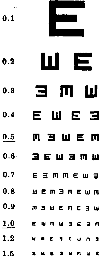 图1 国际标准视力表(据第九届全国眼科会议,1952)