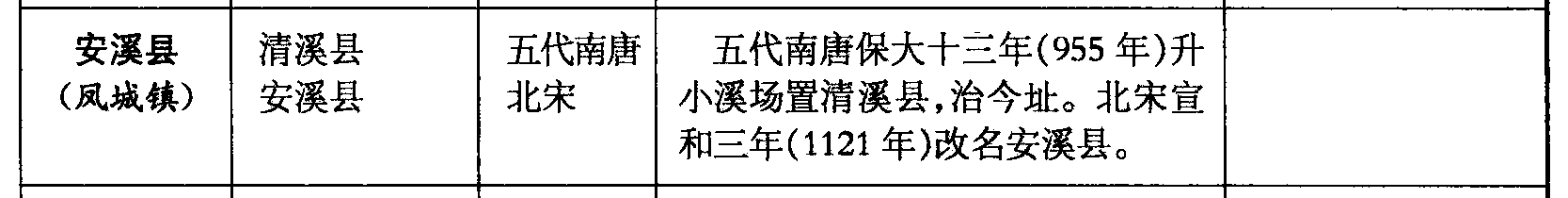 安溪县(凤城镇)清溪县安溪县五代南唐北宋五代南唐保大十三年(955年)升小溪场置清溪县,治今址。北宋宣和三年(1121年)改名安溪县。
