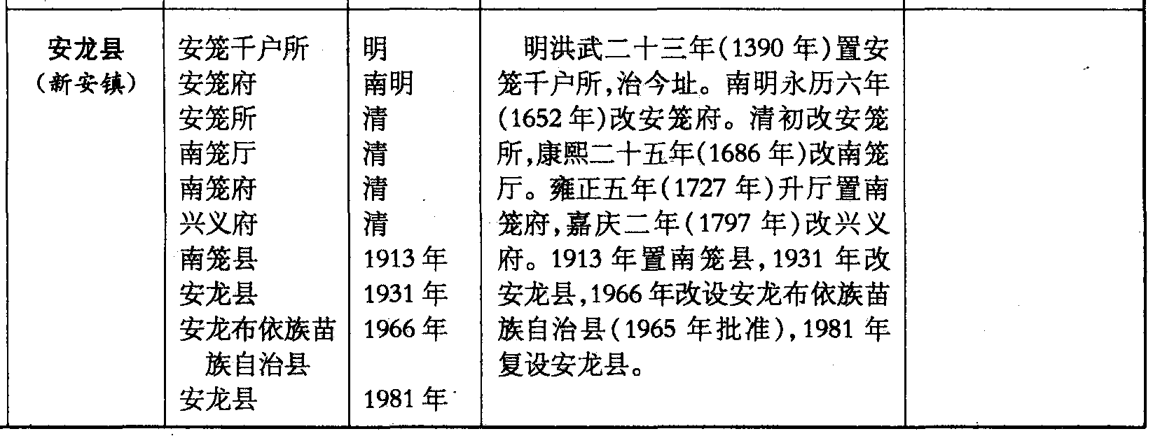 明洪武二十三年(1390年)置安笼千户所,治今址。南明永历六年(1652年)改安笼府。清初改安笼所,康熙二十五年(1686年)改南笼厅。雍正五年(1727年)升厅置南笼府,嘉庆二年(1797年)改兴义府。1913年置南笼县,1931年改安龙县,1966年改设安龙布依族苗族自治县(1965年批准),1981年复设安龙县。