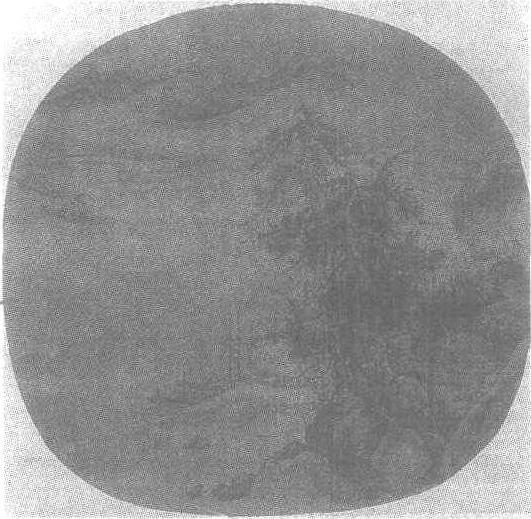 南宋。无款。绢本墨笔。纵25.8厘米,横27厘米。北京故宫博物院藏。图中青山远倚,春水浩荡。江岸边数丛灌木遮蔽着几间草舍。两株古松高高地挺立于大石之间,老干劲直,虬枝盘曲,姿形苍秀潇洒。两条帆船泊在坡前,夕阳残照江波,远方两只小艇高帆涨满,顺风而下,点醒了画图的主题。图中远山用淡墨勾染,小树以浓墨点染。长松、小舟用笔细腻,结构严谨,画风学郭熙一派而又另有新意,是南宋初期一幅出色的山水小品。