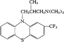 | 释义 | 三氟美嗪 C19H21F3N2S=366.44 CAS-2622-37-9 10-(3-二甲氨基-2-甲基丙基)-2-(三氟甲基)吩噻嗪。 10-(3-Dimethylamino-2-methylpropyl)-2-(trifluoromethyl)phenothiazine. N,N,β-三甲基-2-(三氟甲基)-10H-吩噻嗪-10-丙烷胺。 N,N,β-Trimethyl-2-(trifluoromethyl)-10H-phenothiazine-10-propanamine. 抗精神病药,镇静药。 Trifluomeprazine. INN,BAN,USAN,MI.