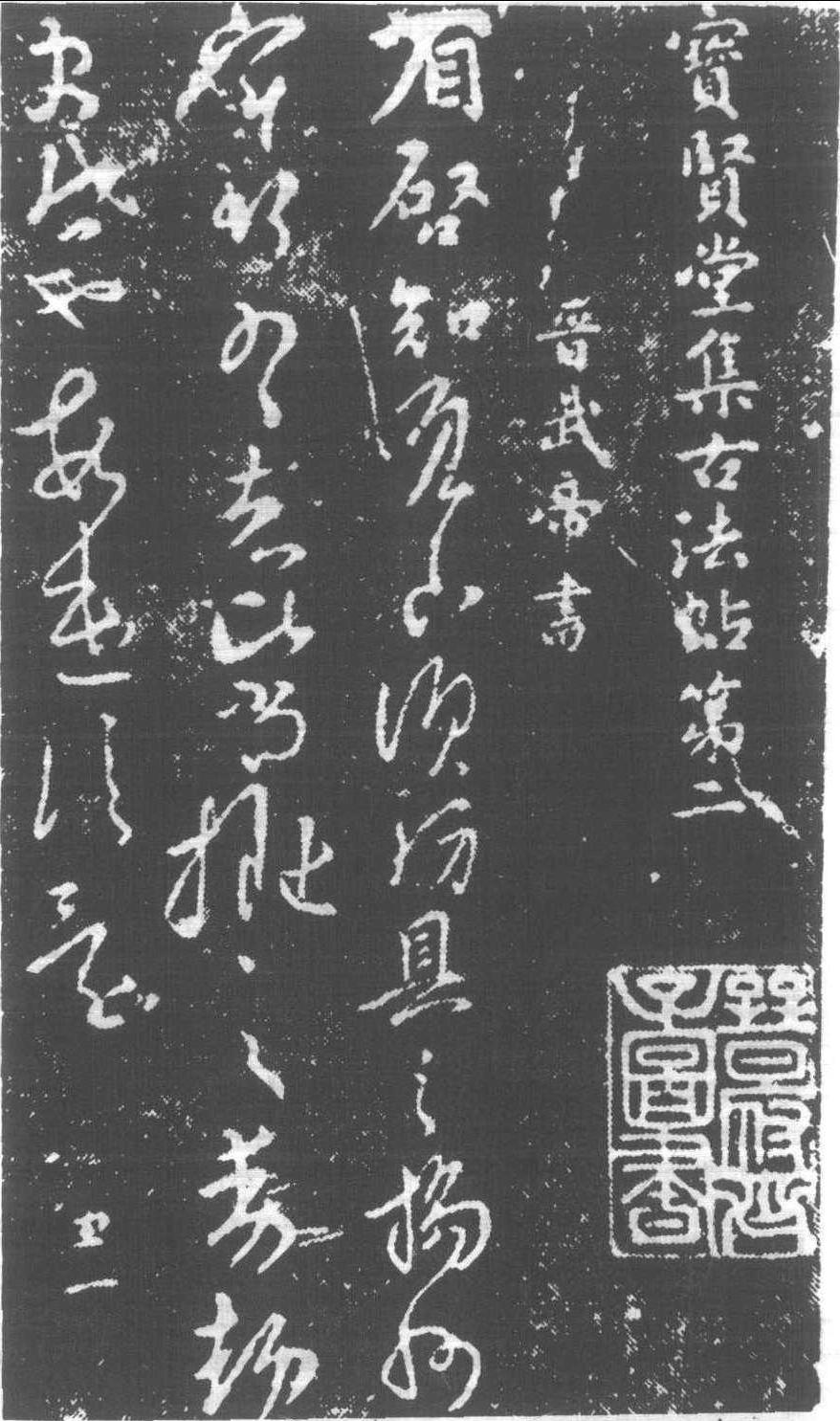 寶賢堂帖 十二卷。俗名 《大寶賢堂帖》。明晉靖王 (朱奇源) 為世子時所輯,王進、楊光溥、胡漢、楊文卿等奉命選擇,大致以《淳化》、《大觀》、《絳》、《寳晉齋》諸帖重刻,作十卷;又增所藏宋、元名人真迹,作二卷,計十二卷。經宋灝、劉瑀摹勒上石。弘治二年 (1489) 刊成。首載長序。序末云:“時弘治二年歲次已酉秋九月一日,書於晉世子寶賢堂。”樣式全仿《大觀帖》,比 《淳化閣帖》約高二字。此帖石理頗粗,摹、刻、拓三手又不佳。但論者評說不一。清傅山將《汴帖》 ( “周藩本”,即 《東書堂帖》)、《肅帖》 ( “肅府本”)、《晉帖》(即《寶賢堂帖》)并論:“今此三本并行人間,《汴帖》撫勒無豐彩;《肅帖》豐肥,濃態側出; 《晉帖》圓秀遒媚,出 《周》、《肅》之上。”明汪珂玉評云: “行款、次第頗不俗,而石理既粗,摹、刻、拓三者不稱,以此在諸帖之下。”明王元美(王世貞)、清孫退谷(孫承澤)亦持斯見。近人鄭裕孚謂:“見明拓本,摹、刻、拓皆佳。元美、珂玉、退谷謂 ‘三者不佳’,蓋所見本非原拓。”據今所見本,摹、刻、拓皆難稱精美。但因 《大觀帖》、《絳帖》之完本無存,故仍為珍貴之資。原石存山西太原傅青主祠。明減後,原石多散佚,清·順治十六年 (1659) 太原守宗彝獲二十四塊,康熙十九年(1680)陽曲知縣戴夢熊補刻五十三石,使得完全,現行本多據此拓出。民國年間重印。又有康熙五十七年(1718)李清鑰復刻四卷,名曰《古寳賢堂帖》,俗稱《小寳賢堂帖》。卷二中首列趙孟頫小楷一首,後題至元元年(1264) 秋七月。蓋皆偽托,絶非真迹。參見本書收載 《帖目别表》。 |