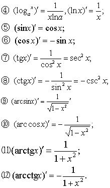 ❶(C)′=0 (C是常数);❷(xa)′ =axa-1 (a是实数),(1/x)′=-1/x2❸ (ax)′ = axlna,(ex)′ =ex;❺ (sinx)′ =cosx;❻ (cosx)′ =-sinx ;基本初等函数的导数具有如下特点:❶ 基本初等函数在其定义域上可导,其导数是初等函数。❷ 常数函数、幂函数、指数函数和三角函数的导数仍然是同类型的函数。对数函数和反三角函数的导数则是代数函数。由于初等函数是由五种基本初等函数与常数经过有限次四则运算与复合运算得到的,而五种基本初等函数与常数的导数又都是已知的初等函数,因此,根据求导法则的特点,可以作出如下结论:❶ 任何一个初等函数的导数,都能运用相应的求导法则转化为五种基本初等函数与常数的导数,而且总是可以求出的。❷ 任何一个初等函数的导数都是初等函数。
