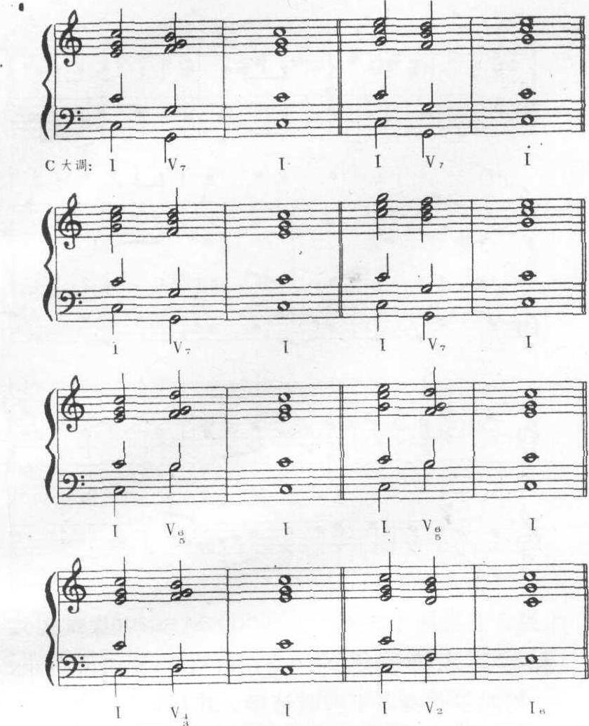 );以五音为低音构成的属七和弦为第二转位,名称为“属三四和弦”(Ⅴ