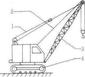 履带起重机 1.变幅绳 2.起升绳 3. 动臂 4. 履带运行机构 履带起重机运行部分类同坦克履带的旋转起重机。宜于在松软、崎岖和沼泽地带行驶,越野和机动性能良好。广泛用于建筑安装工程。 履带起重机一种用履带行驶的用于起重吊装的起重机械。是单层工业厂房吊装应用最多的一种起重机。它由动力装置(发动机)、传动装置(主离合器、减速器、换向机构等)、回转机构、行驶机构(履带、行走支架)、卷扬机构(吊钩和吊杆升降机构)、操作系统、工作装置(吊杆、起重滑轮组等)和电器设备等组成。 它机动灵活,使用方便,能回转360°,可载荷行驶,对道路的要求较低。但是,它稳定性小,不宜超负荷使用,行走慢,且对路面有一定程度的破坏作用,不宜长距离行走,一般用平板拖车作长距离运输。 |