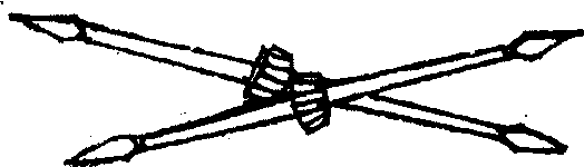 武术器械的一种。据记载,峨嵋刺作为武术项目出现是清代末年。武术所用的峨嵋刺长约一尺,其形状是中间粗,两头细的锥形体,头端略扁,呈菱形带尖,中间有一圆环。表演时,将圆环套在练者中指上,左右手各持一个,运用抖腕和手指拨动,使其转动。用法有刺、穿、拨、挑等,结合各种步型、步法、平衡、跳跃等动作构成套路练习,舞动起来别有风格(图96)。