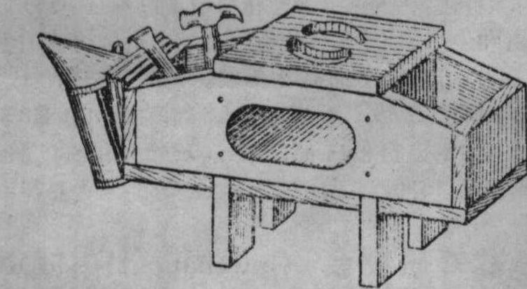 | 释义 | 工具凳tool’s stool在蜂场工作时使用的能放置各种小蜂具的长方凳(见图)。坐板上开有可提携的小槽;两侧斗内可放置起刮刀、钉锤、蜂刷、割蜜盖刀等工具;斗旁可挂喷烟器;坐板下可存放面网、手套、记录簿、蜂王诱入器等。