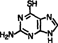 硫鸟嘌呤(6-thioguanine,TG) 与巯嘌呤比较,在等剂量下TG对动物肿瘤的抑制率高,但毒性亦大。TG与MP相似,为次黄嘌呤-鸟嘌呤转磷酸核糖基酶转化为活化型的核苷酸TGRP,TGRP能阻止嘌呤核苷酸的相互转换,影响DNA和RNA的合成。更重要的是TGRP能掺入DNA和RNA,使DNA不能复制,而引起细胞死亡。当用一次剂量时,在人骨髓中只有少量的TG掺入DNA,5天连续给药则DNA中的鸟嘌呤大量地为TG所取代。TG掺入DNA很可能是TG抑制癌细胞的作用机制。