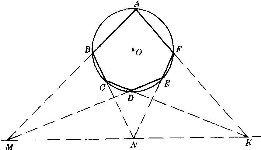 | 释义 | 帕斯卡定理 帕斯卡定理pasika dingli圆内接六边形三组对边的交点共线.如图,圆内接六边形ABCDEF的对边AB,DE交于M,BC,EF交于N,CD,FA交于K,则M,N,K三点共线.