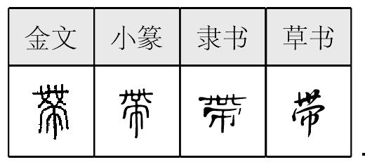 ❷笼覆义。沈约《宿东园》诗:“夕阴~层阜,长烟引轻素。”此为笼覆义,犹云暮色渐渐笼罩山岭丘陵。刘长卿《送台州李使君兼寄题国清寺》诗:“晴江洲渚~青草,古寺杉松深暮猿。”“带”兼表被动,犹言洲渚为青草所覆盖。皇甫冉《和樊润州秋日登城楼》诗:“露冕临平楚,寒城~早霜。”用法同上。羊士谔《暮秋言怀》诗:“城隅凝彩画,红树~青山。”黎逢《小苑春望宫池柳色》诗:“色承阳气暖,阴~御沟清。”司空图《即事》诗:“陂痕侵牧马,云影~耕人。”仲殊《南歌子》词:“十里青山远,潮平路~沙。” 带 带映照,笼覆。杜甫《夜宴左氏庄》:“暗水流花径,春星带草堂。” ☚ 草草 度 ☛ 带 带笼覆。仲殊《南歌子》(十里青山远):“十里青山远,潮平路带沙。”“路带沙”言道路被沙笼覆。又,《南柯子》(金甃蟠龙尾):“霁色澄千里,潮声带两洲。”义同。 ☚ 草草 要自 ☛ 带dài围绕。王维《酬虞部苏员外过蓝田》:“贫居依谷口,乔木带荒村。” 带 带dài腰带。《卫风·芄兰》一章:“容兮遂兮,垂带悸兮。”毛《传》: “容仪可观,佩玉遂遂然垂其绅带,悸悸然有节度。” 《卫风·有狐》二章:“心之忧矣,之子无带。”毛《传》:“带,所以申束衣。”《小雅·都人士》四章:“彼都人士,垂带而厉。”毛《传》:“厉,带之垂者。”《说文》: “带,绅也。男子鞶革,妇人带丝。” ☚ 革 贲 ☛ 带读音d·ai(ˋ),为ai韵目,属ai—uai韵部。当盖切,去,泰韵。 ❶皮带或布带等的“带”。 ❷地带;区域。 ❸佩带;携带。 ❹捎带。 ❺带领;率领。 ❻有。 上一条: 汏 下一条: 帶 带 带戴。吴语地区都称“戴”为“带”。本书在用“戴”字时,一般都写成“带”。例第二十回:“我不好带出来的。你替我拿到银匠家毁了,打一件金九凤垫根儿,每个凤嘴啣一挂珠儿;……。” ☚ 银匠 啻啻磕磕 ☛ 带1. 被无意间夹带。2. 甩。《十里亭》(贤孝):“袍袖一带腾空去,秀阁里抛下了林英女。”