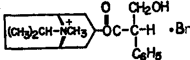 异丙基阿托品 (ipratropin bromide) 为胆碱受体阻断药,使细胞内cGMP水平下降,因而松弛支气管平滑肌,减少腺体分泌,抑制肥大细胞释放过敏活性物质,从而起到平喘作用。异丙基阿托品为季铵化合物,以0.025%的气雾剂吸入,除少部分病人有口干感觉外,未见其它全身副作用。有报道认为异丙基阿托品治疗喘息型慢性支气管炎的效果比舒喘宁好,而当用于治疗支气管哮喘,则本药不如舒喘宁。