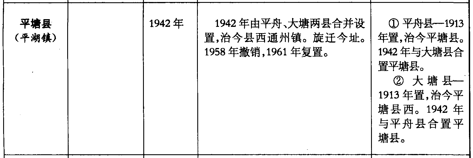 平塘县(平湖镇)1942年1942年由平舟、大塘两县合并设置,治今县西通州镇。旋迁今址。1958年撤销,1961年复置。❶平舟县—1913年置,治今平塘县。1942年与大塘县合置平塘县。❷ 大塘县—1913年置,治今平塘县西。1942年与平舟县合置平塘县。