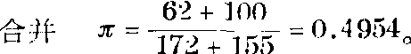 本例单侧检验,(d1+d2)>4σ,故P<0.01,因此按α=0.05水准拒绝H0,接受H1,可认为乙疗法优于甲疗法。 例4 观察某药的预防效果,服药组1966人中发病6人,发病率3.1‰;对照组445人中发病6人,发病率13.5‰;问服药组发病率是否低于对照组? H0:π1=π2 H1:π1<π2。 单侧α=0.05。 先求X=0.0031×445=1.38,在横轴上点出1.38和对照组的发病人数6;量出两点间距离,再从σ尺上量出同等距离,在α尺上相应的读数即为P值,本例P<0.01; 按单侧α=0.05水准拒绝H0,接受H1,故可认为服药组发病率低于对照组。 例5 设某实验需用白兔200只,根据过去经验,白兔中不合该实验条件的占4%。为取得200只符合实验条件的白兔,计划用量应订为多少(取α= 0.05)? 先按分割比4:(100-4)划分割线,在分割线右侧划一条距离为U0.05的平行线;再在纵坐标为200+1处划平行于横轴的直线,交所作平行线于M;然后读出M点的横坐标为14.2,取进位的整数15;即计划量订为200+15=215只时,才有95%的可能取得200只符合实验条件的白兔。 ☚ 平方根变换 百分数的平方根反正弦变换 ☛ |