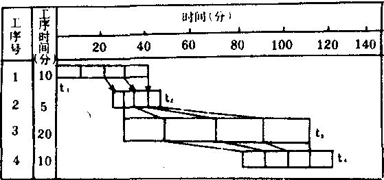 | 释义 | 平行顺序方式劳动对象在工序之间移动和工序之间在时间上衔接的一种时间组织方式,即平行移动方式和顺序移动方式结合起来的生产过程时间组织。零部件在工序之间一部分是单件运输,按顺序方式进行,另一部分则集中起来运输,按平行方式进行。这种方式虽比平行移动方式周期长,但便于把分散的空闲时间集中起来加以利用,而且生产周期化顺序移动方式短。如图示: