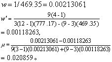 F=2053.84/469.35=4.38, 查F界值表得P<0.01,按α=0.05水准,拒绝H0,接受H1,故可以认为照射前后不同时间血浆皮质酮含量不等。 按式(12)~(16)计算Ŷi及8ŷ: