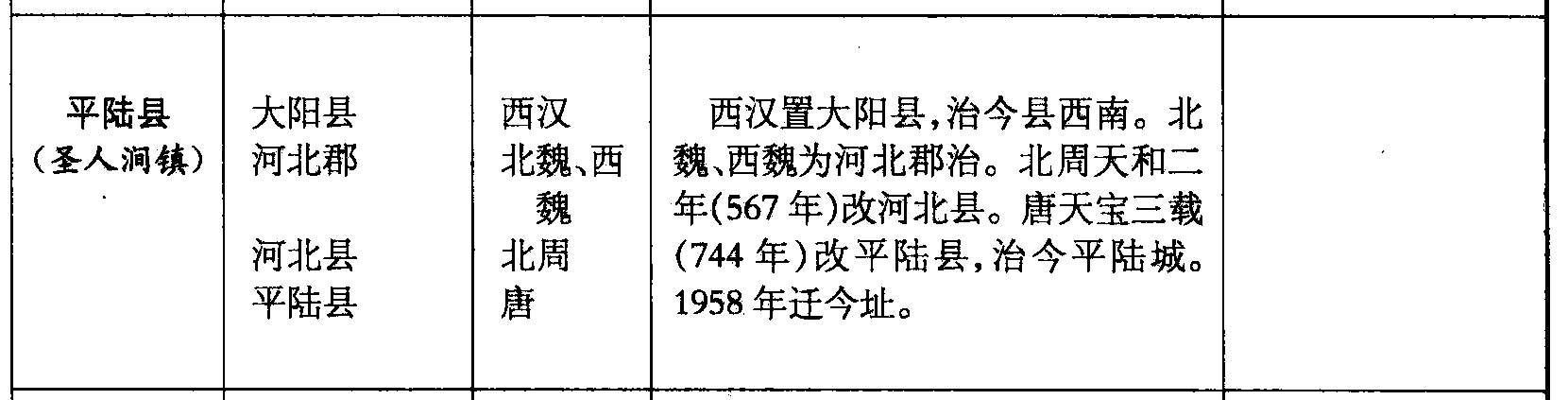 平陆县(圣人涧镇)大阳县河北郡河北县平陆县西汉北魏、西魏北周唐西汉置大阳县,治今县西南。北魏、西魏为河北郡治。北周天和二年(567年)改河北县。唐天宝三载(744年)改平陆县,治今平陆城。1958年迁今址。