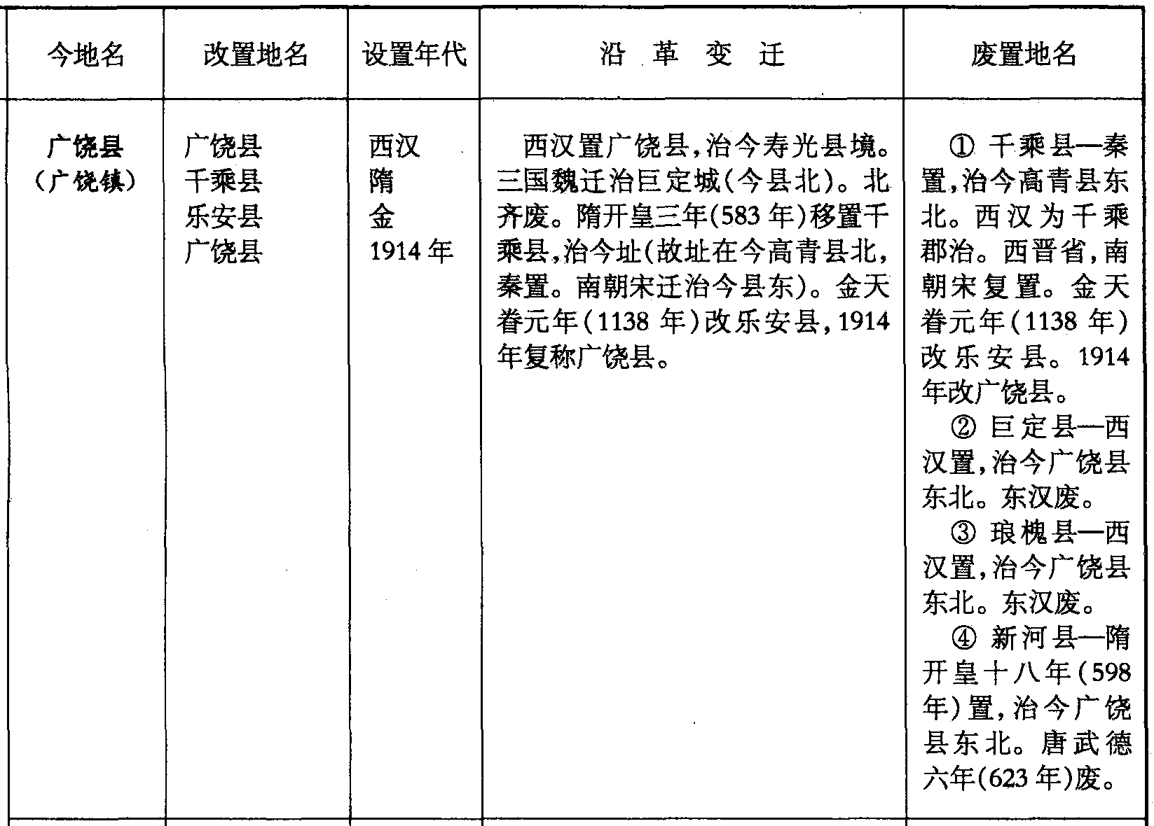❶ 千乘县—秦置,治今高青县东北。西汉为千乘郡治。西晋省,南朝宋复置。金天眷元年(1138年)改乐安县。1914年改广饶县。