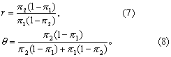 1,序贯试验要求能至少鉴别出试药的有效率为π2,则试验标准所规定r (单向试验),或θ(双向试验)可分别由以下公式决定: