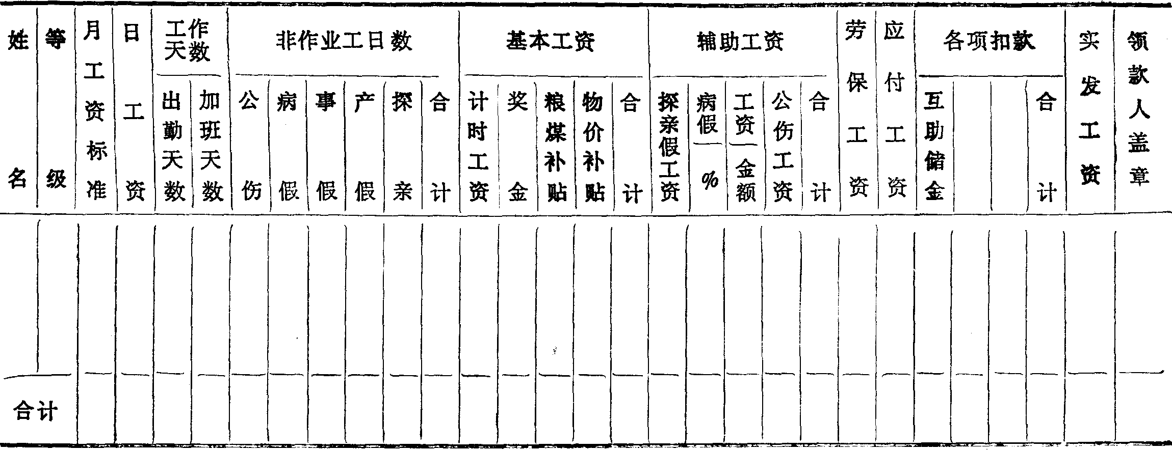 应付工资是每月应付给职工的工资总额。施工企业必须按照国家工资制度的规定,正确计算应发工资数额,并按照工资的用途,合理地分配计入工程成本及其他费用项目。在工资总额内的各种工资、奖金、津贴等,不论是在当月支付,还是在下月支付,都通过“应付工资”科目核算。劳资部门根据考勤记录、工时记录、工程量或产量记录、工资标准、工资等级等资料编制“应付工资单”,然后由财会部门进行审核汇总,编制“工资汇总表”,凭以支付。“应付工资单”的参考格式如下: 应付工资单 单位: 部门或班组: 年 月