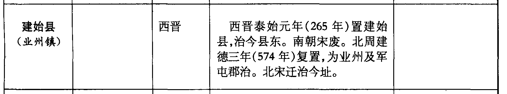 建始县(业州镇)西晋西晋泰始元年(265年)置建始县,治今县东。南朝宋废。北周建德三年(574年)复置,为业州及军屯郡治。北宋迁治今址。