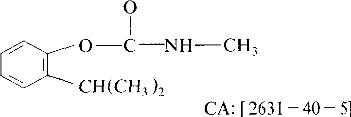 性能 纯品为白色结晶状粉末,熔点96~97℃。工业原粉为浅红色片状结晶,密度0.62,沸点128~ 129℃(2666.448帕),熔点89~ 91℃,闪点156℃分解温度为180℃,蒸气压0.133帕(25℃ )。25℃时,在丙酮中溶解度400克/升,在甲醇中125克/升,在二甲苯中 <50克/升,在水中265毫克/千克。在碱性和强酸中易分解,在弱酸中稳定。对光和热稳定。对高等动物毒性中等,大白鼠急性口服LD50为403~ 485毫克/千克,小鼠487~ 512毫克/千克,雄大白鼠急性经皮LD50>500毫克/千克。对兔眼睛和皮肤刺激性极小,试验动物显示无明显蓄积性,在试验剂量内未发现致突变、致畸、致癌作用,两年喂养试验,无作用剂量大鼠为0.5毫克/千克· 天,小猎兔犬为8.7毫克/(千克·天); 鱼毒较低,鲤鱼LC50>10毫克/千克(48小时),金鱼LC50为32毫克/千克(24小时),对蜜蜂有毒,具有较强的触杀作用,亦有一定的渗透和传导作用。作用机制是抑制乙酰胆碱酯酶。 应用 主要用于防治水稻飞虱和叶蝉科害虫,击倒力强、药效迅速,但残效期较短,一般只有3~ 5天。可兼治蓟马和蚂蟥,对稻飞虱天敌蜘蛛类安全。对甘蔗扁飞虱、马铃薯甲虫、厩蝇等也有良好防治效果。 异丙威isoprocarb又名叶蝉散、灭扑散、MIPC。氨基甲酸酯类杀虫剂。化学名称:2-异丙基苯基甲基氨基甲酸酯。化学结构式如下。纯品白色结晶、熔点88~93℃。2 666 Pa沸点128~129℃,不溶于水,易溶于丙酮、乙醇、二甲苯。属中等毒性,可防治稻飞虱、稻叶蝉。每公顷用2%粉剂30~37.5 kg,直接喷粉或混细沙土20 kg撒施。大鼠急性口服LD50为403~485 mg/kg、小鼠为487~512 mg/kg、兔为500 mg/kg。经皮LD50 (♂)大鼠及(♂)小鼠>500 mg/kg,对鱼毒性中等,鲤鱼48 hLC504.2 mg/L。