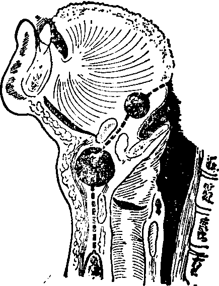 甲状腺舌管囊肿 甲状腺舌管囊肿是由甲状腺舌导管的残余上皮发生。在胚胎第4周时,咽底部第一和第二腮弓之间有一向下行的袋状突出物即甲状腺的原基,就是以后的舌盲孔。在胚胎早期带有蒂管即甲状舌导管。在胚胎第6周导管开始退化,第10周导管闭锁消失。胎儿发育期中,甲状舌管退化不全,残存上皮分泌物聚积而形成先天性囊肿,即为甲状腺舌管囊肿。此病多见于1~10岁的儿童,亦可见于成年,男女无大差别,囊肿绝大多数位于颈中线,但少数病例也可略为偏向一侧。上自舌盲孔,下至胸骨切迹任何部位均可发生,但以舌骨上、下部为最常见。囊肿生长缓慢,呈圆形或椭圆形,大小不一,直径一般在1~2cm之间,表面光滑,边缘清楚,未发生感染的囊肿与表面皮肤及周围组织无粘连较固定,不能上下或左右推动,无压痛,也不影响吞咽运动,往往因囊内分泌物充盈紧张,肿块有实质感。肿块可随吞咽或伸舌运动而上下移动。病员多无自觉症状,若囊肿发生于舌盲孔下面或前后部,可使舌根部肿胀,发生吞咽、语言及呼吸功能障碍。诊断可根据肿块部位和移动情况,穿刺检查可抽出透明、微混的黄色稀薄或粘稠性液体。手术治疗是唯一的有效疗法。2岁以内的婴儿和体积小未发生感染的囊肿可暂时不作手术。若囊肿有急性感染初起时,则必须先用抗菌治疗,待炎症完全消退后2~3周再进行手术。如囊肿已化脓就应先切开引流。若在感染时施行切除手术,不但操作困难,影响伤口的愈合,且还有扩散感染的危险,增加复发的机会。手术切除舌骨中央段和舌骨上到舌根可能存在的未退化导管,方能避免复发。