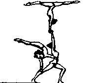女三项目第1套静力性造型动作之一。属一人打底的双倒立造型。“下”弓步站立,“中”、“上”分别在其腿、手、肩、头等部位做各种倒立。这类造型可过渡成其它造型,要求“中”也具备较强的倒立技术、难度价值较高。例如:在1988年世界锦标赛中保加利亚女三第1套动作中采用了“上”在“下”的手上做高单臂倒立:“中”在“下”的后腿上一手扶腰、一手撑腿倒立,然后两人同时下落过渡成单臂直角支撑的弓步造型,这组动作充分体现了3个运动员的能力,夺得了这个项目的冠军。