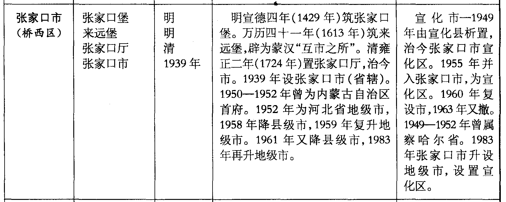 宣化市—1949年由宣化县析置,治今张家口市宣化区。1955年并入张家口市,为宣化区。1960年复设市,1963年又撤。1949—1952年曾属察哈尔省。1983年张家口市升设地级市,设置宣化区。