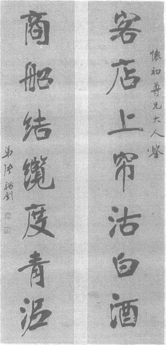 | 释义 | 张裕钊行书七言联沈阳故宫博物院藏品。此联纸本。全长122,宽27;心长87,宽20厘米。行书七言联、“野桃食笑竹篱短,溪水自摇沙水清。”款署:“张裕钊”下钤“张裕钊印”、“廉卿”。其书高古浑穆,点画转折,绝无痕迹。审其笔墨,运笔,中锋必折,外墨必连,转必提顿,以方为圆,落必含蓄,以圆为方,他把北碑之法,溶为自己的独特风格,对后世影响极大。张裕钊 (1823—1894),字廉卿,湖北武昌人,清代书法家。 张裕钊行书七言联 张裕钊行书七言联清。纸本。纵129.1厘米,横30厘米。北京故宫博物院藏。张裕钊(清道光三年—光绪二十年,即公元1823—1894年),字廉卿,湖北武昌人。道光举人,官内阁中书。历主江宁、保定、湖北等地书院。师事曾国藩,与黎庶昌、吴汝纶、薛福成称“曾门四弟子”。书宗北碑,点画转折,皆绝痕迹。近人马宗霍评:“廉卿书劲洁清拔,信能化北碑为己用,饱墨沉光,精气内敛,自是咸、同一家。”其书法对后世以及日本书坛有极大影响。此件行书七言联“客店上帘沽白酒,商船结缆度青泥。”其书转笔提顿,以方为圆,落笔含蓄,以圆为方,淳雅古质,峻逸脱俗,自有晋、宋神韵。