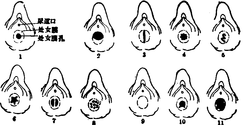处女膜类型及破裂的示意图 1. 环状处女膜 2. 半月状处女膜 3. 唇状处女膜 4. 锯齿状处女膜 5. 剪彩状处女膜 6. 叶状处女膜 7. 中隔状处女膜 8. 筛状处女膜 9. 无孔处女膜 10. 处女膜破裂 11. 处女膜残痕 环状处女膜: 此型最为常见。特点是处女膜呈环状,围绕在阴道口周缘,各部分宽度基本一致。处女膜孔位于中央,多呈圆形,部分呈椭圆形。孔的大小不一,大者能插入一指(食指或中指),有紧迫感。游离缘整齐,平滑或略有皱折。 半月状处女膜: 处女膜呈半月状或新月形,偏于阴道口的一侧。常见的是位于阴道口的后半侧,此时处女膜孔则偏于阴道口的前半侧。这类处女膜的宽度不等,在膜的正中部最宽,两侧角最窄。有的半月状处女膜的两侧尖角在阴道口前缘互相接触。游离缘较平滑,整齐。处女膜孔呈卵圆形或类圆形。 唇状处女膜: 处女膜似唇样分成两片,多数位于阴道口的左右两侧,外观酷似第三阴唇。处女膜宽度以膜的中央部为最宽,前后两端最窄。游离缘平滑、整齐。处女膜孔呈直线型或纺锤形。 锯齿状处女膜: 处女膜的游离缘,有多数浅表性切迹(即浅的凹陷)。这些切迹分布均匀,深浅较一致 (多为2mm左右),排列规律,状如锯齿,故命名为锯齿状处女膜。有些切迹稍深,但其分布、排列、深浅的规律仍较一致,称为叶状处女膜。有的状如剪彩,则称为剪彩状处女膜。 真正锯齿状、剪彩状或叶状处女膜,在实际案例中并不多见,常见者,是在环状、半月状或唇状处女膜中,有1~2条或2~3条浅切迹,此时需严格区分是自然切迹还是人为破裂。 中隔状处女膜: 处女膜孔有两个,两孔之间为一条狭窄的膜(即中隔)相隔。孔呈圆形或椭圆形,两孔的大小一致,或一大一小。中隔可纵行或横行,处女膜孔分别在左右两侧或前后两侧;有时中隔斜向,则二孔亦斜向分列于中隔的两侧。此类处女膜罕见。中隔断离后的断端可呈息肉样悬挂在阴道口。 筛状处女膜: 处女膜上似筛样有许多小孔,即处女膜孔呈多数性,此类处女膜少见。 无孔处女膜: 阴道口完全闭锁,故又称处女膜闭锁(atresia hymenalis)。 以上各型,以环状、半月状及唇状三型为最多见,据国内统计约占94.5%。 检查处女膜 检查时需经被检者本人同意,幼女则需其父母或监护人的同意。检查时,先观察外阴部的一般情况。有无阴毛,阴毛的分布、疏密、长短、粗细、卷曲情况及颜色等;大小阴唇是否肥厚、丰满;尿道口、阴道前庭粘膜及外阴部等处有无红肿、分泌物或损伤等现象。暴露处女膜时以左手拇指与食指(或食、中二指)分开大小阴唇,并向后下方(肛门侧)牵引,使处女膜完全暴露。观察处女膜孔的位置、形状及大小;处女膜的形状、宽度、厚度及颜色;游离缘的颜色及平整情况。处女膜有无破裂、裂口的数目、位置、深度、颜色,有无出血、肿胀及炎症反应等。有无自然切迹,自然切迹的数目、位置、形态及深度等。若向肛门侧牵引大小阴唇仍不能完整地暴露处女膜时,则可右手持消毒的圆头玻璃棒或探针,插进处女膜孔少许,将玻璃棒的圆头贴在处女膜的内面,轻轻地向外面顶起,顺时针方向检查处女膜各部位的形态特征、处女膜的硬度及弹性。必要时可用放大镜检查,此时,微小的破损均可观察清楚。 处女膜破裂系由游离缘裂向基底部。如裂口已达基底部者,称完全性破裂;如裂口未达基底部者,称不完全性破裂。处女膜破裂的记录方法,一般以钟点数表示破裂的部位。例如记录:“处女膜在相当于表面5点及7点二处各有破裂一处,5点裂口的深度为处女膜宽度的2/3;而7点的裂口则深达处女膜的基底部。” 如处女膜孔较大,必要时可试探处女膜孔能否伸进一小指,或一食指、或一中指,甚至两个手指,有无紧迫感。同时试探阴道腔的松紧度如何。据此有助于判断处女膜未破者是否曾经性交过。为了避免感染,月经期不应作阴道检查。 强奸的鉴定 对于强奸可疑案件,应尽早进行检查鉴定。因为在强奸现场,被害人或罪犯身上、衣裤等处均可能遗留犯罪的证据。这些罪证的取得及证实,对判断曾否强奸可起决定性作用。若延误时间,则可能因活体创伤逐渐治愈,尸体发生腐败,现场遭受破坏,衣裤已被洗净等而导致鉴定困难。因此,应及时勘查现场,搜集物证,进行检查,并作详细的记录、绘图或照相。 ![]() 处女膜破裂部位指示法 5点不完全性破裂 7点完全性破裂 案情调查 向家属及有关单位了解被害人的一般情况,如姓名、年龄、职业、平时的生活习惯及生活作风,以及社交关系等。若被检者是活体,则应单独地向她询问被强奸时的有关情况,如时间、地点、当时所处的位置、神志是否清醒、本人的月经情况、曾否妊娠或分娩、加害手段及过程,衣裤有无被撕扯等情况;罪犯的特征:如身高、发育、营养、体质、衣着及其他特征等;有无射精,有无撕扯罪犯的衣裤、钮扣或咬伤罪犯的手指、肩部、口唇等抵抗情况。 现场勘验 强奸案现场可能遗留有抵抗格斗的痕迹。若在野外,则可在草地留有相应的压痕或拖拉痕。但是,要注意罪犯可能破坏原始现场,制造假现场。在现场勘验时,应注意发现与搜集物证,特别对现场的衣裤、被褥、床单、席子、污纸,地上或野外的草地等处均应仔细寻找精斑、阴毛或血迹等。被害人如为活体,可根据其提供的线索,认真寻找精斑可疑处。还要注意检查有无其他罪证,诸如堵塞口腔的手帕、衣服碎片、扯脱的