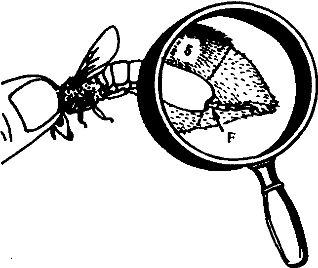 图5 第五腹节背板覆毛长度的测量部位; F表示第二跗节 数据处理 将所测得的各种数据进行生物统计分析,计算出平均数、标准差、变异系数等,并进行差异显著度测定。 |